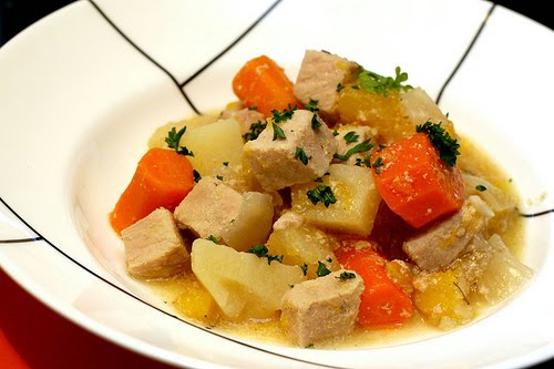- 1 ½ pounds boneless pork, cut into ½ inch cubes