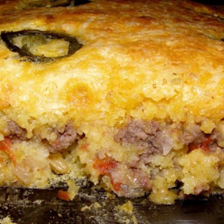 Sauté hamburger onion tomatoes and garlic. Drain if needed then pour over cornbread mixture.