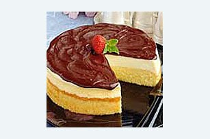 GREASE bottom of 9-inch springform pan. Prepare cake batter as directed on package; pour into prepared pan. Bake at 325°F for 25 minutes if using a silver springform pan. (Bake at 300°F for 20 minutes if using a dark nonstick springform pan.) Cool.