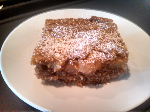 Preheat oven to 350....In a bowl whisk together the eggs sugar oil and vanilla.....in another bowl add dry ingredients and whisk to sift....add the dry ingredients to oil mixture and mix well....add apples and nuts batter will be thick.....pour into a greased 9 x 13 pan and bake for 40 to 50 minutes....sprinkle with powdered sugar when cool