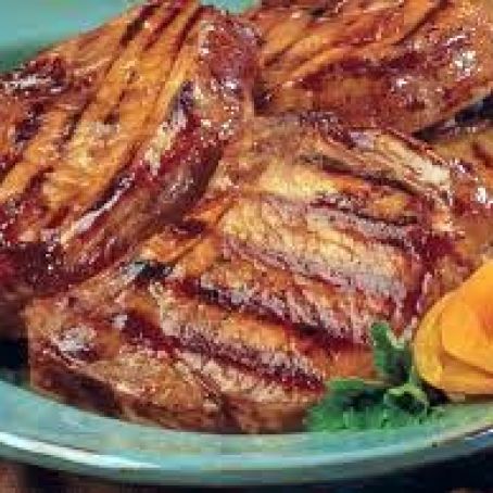 2. Preheat a gas grill to medium-high. Rub chops with oil and sprinkle with salt. Grill for 10 minutes, turning once. Continue to cook, basting with glaze several times, until and instant read thermometer inserted into center of chop registers 140 degrees, 6-8, minutes longer. Let chops rest on a cutting board for 5 minutes before serving.