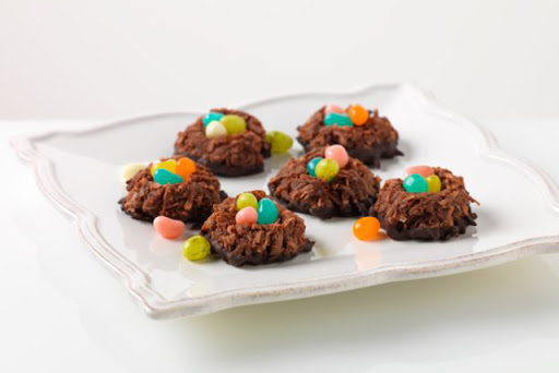 Create a new Spring tradition with our double chocolate-coconut macaroons. These simple cookie creations double as nests with colourful candy eggs.