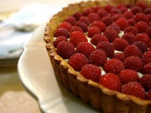 Spread the pastry cream evenly in the base of the prepared cookie crust. Arrange the berries neatly over top.