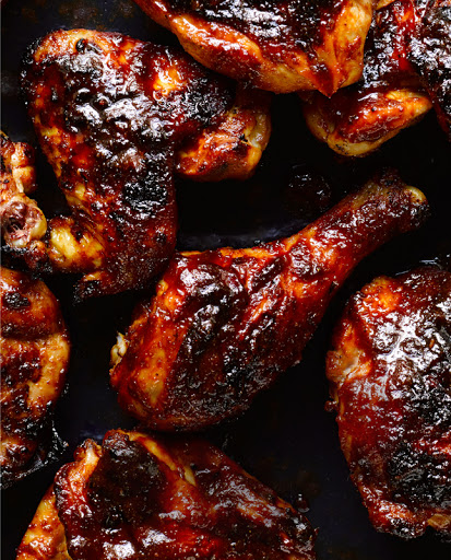 Prepare grill for medium heat. Season chicken with 4-3-2-1 Spice Rub. Grill, turning occasionally, until lightly charred, 15–20 minutes. Continue grilling, turning and basting with barbecue sauce often, until chicken is cooked through and an instant-read thermometer inserted into the thickest part of thigh registers 165°, 8–10 minutes longer.