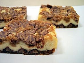 In a large mixing bowl, cream together cream cheese, 1/4 cup sugar, flour and vanilla extrac . Add eggs, one at a time, beating until smooth. Pour in the baking pan. Sprinkle with reserved crumb topping and remaining chips.