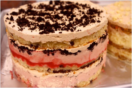 2. Transfer the sheet pan to the freezer and freeze for a minimum of 12 hours to set the cake and filling. The cake will keep in the freezer for up to 2 weeks.