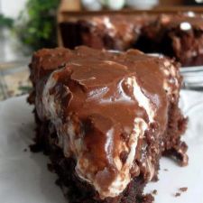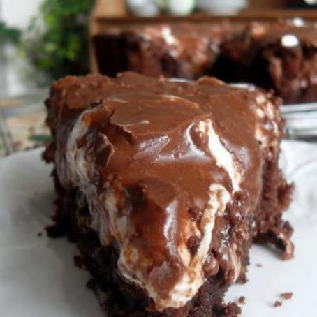 Bake on a middle shelf of the oven for 25 to 30 minutes, or until a toothpick inserted in the center comes out clean. Immediately sprinkle the marshmallows on top and return to the oven for a few minutes to melt the marshmallows. Remove from the oven and carefully spread the chocolate frosting over top.