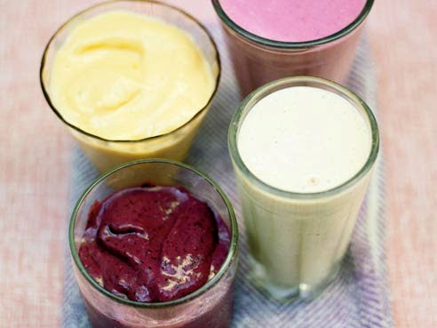 Smoothies are not only deliciously tasty but they're also perfect to have for breakfast, as they're full of goodness. Adding quick cook oats and nuts to them is great, because it helps slow down the absorption of the sugar from the fruit into your bloodstream, which gives you more energy for longer. The great thing about frozen fruit is that it's been picked at its best, at the right time, and hasn't been forced to grow out of season, like so much of the "fresh" fruit on offer to us these days. It's also cheaper and far more convenient— it will keep happily in your freezer for months on end, so any time you fancy a smoothie, you can have one!