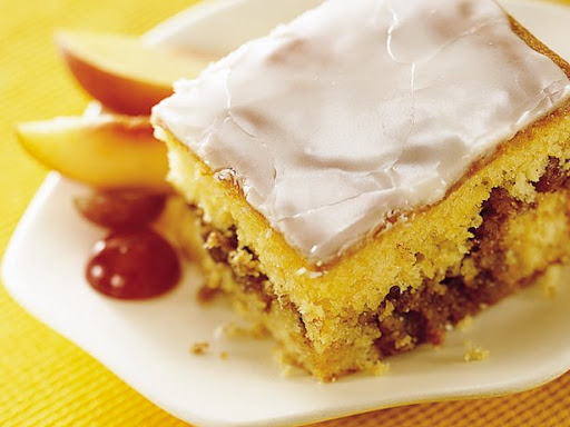 Bake 44 to 48 minutes or until deep golden brown. In another small bowl, stir powdered sugar, milk and vanilla until thin enough to spread. Prick surface of warm cake several times with fork. Spread powdered sugar mixture over cake. Cool completely, about 1 hour. Store covered.