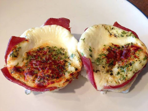 Line muffin tin with parchment paper and cut bacon slices in 1/2. Criss cross bacon (1 slice per cup). Bake for about 6-8 min to let the bacon get a little crisp.