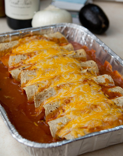 Pour the remaining sauce over the enchiladas and cover with foil.