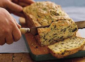 Heat oven to 350 degrees. Grease loaf pan. Mix all ingredients except spinach in medium bowl until well blended. Beat 1 minute. Stir in spinach until well blended. Pour into pan. Bake 55-65 minutes or until toothpick inserted in center comes out clean. Cool 20 minutes. Remove from pan.