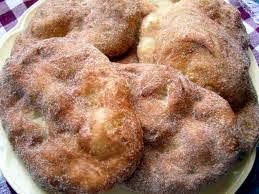 Heat approximately 4 inches of oil in either a deep-fryer (375 degrees) or a wok or a Dutch oven. Before placing the flattened dough into the oil, stretch them into ovals and thin them and enlarge them (to resemble the tail). Place the tails in the oil one (or two) at a time. Fry in the oil, turn them once until the tails are a deep brown. This process usually takes about 1 to 2 minutes per side. Carefully remove the tail from the oil and let it drain on a paper towel. Place left over sugar in a large bowl and add the cinnamon. Toss the beaver tail into the bowl while it is still hot. Shake off any extra sugar and cinnamon mixture.