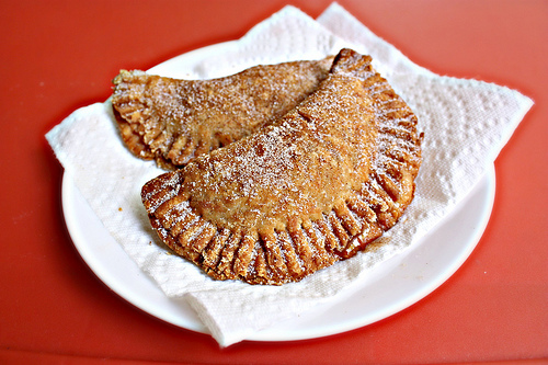 Heat oil in a skillet or deep fryer to 375 F degrees. (Tip: An easy way to test if the oil is hot enough is by dropping a small piece of dough into the oil. If the dough starts bubbling fast, then the oil is hot enough. If the bubbles are slow, the oil isn't hot enough) Fry each pie till golden brown around the edges. Use tongs to gently flip over gently and cook the other side for one minute.