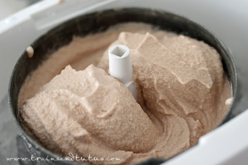 Follow your ice cream freezer directions to finish the ice cream.