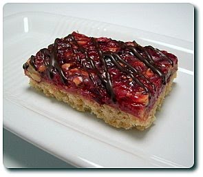 Add half of the chopped chocolate to a microwave-safe bowl and melt on half power in the microwave just until smooth. Add remaining chocolate and stir until melted and smooth. Drizzle chocolate back and forth over the bars.