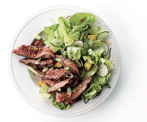 This main course salad has it all: tender greens, crisp radishes, sweet pineapple, beefy steak, and a bright, fresh dressing that packs a bit of heat, too. Look for peeled and cut fresh pineapple in the produce section of your supermarket; it’s a great time-saver.
