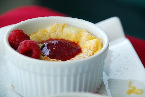 Mini Custards with Limoncello Spiked Raspberry Sauce