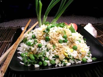 Adapted From A Recipe by Shelia Lukins. Shelia Lukins says, the fried rice's of Thailand do not seem as oily as those from our favorite Chinese restaurants. Instead they are a bit smokier and denser in flavor. I've used brown rice and smoky bacon to create this effect. The rice is spiced with ginger and garlic and refreshed with cucumbers and crispy bean sprouts. Serve in large shallow bowls with a fried egg atop for a rich and satisfying luncheon or supper dish.