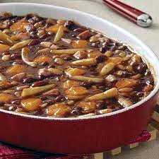 1. Brown bacon then ground beef. Add onions and cook until tender. Drain off grease.