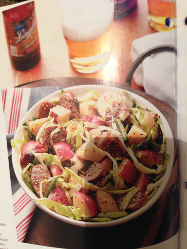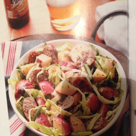 Transfer potatoes to a bowl with the cabbage, then pour dressing over the top. Let potatoes and cabbage stand while grilling the brats.