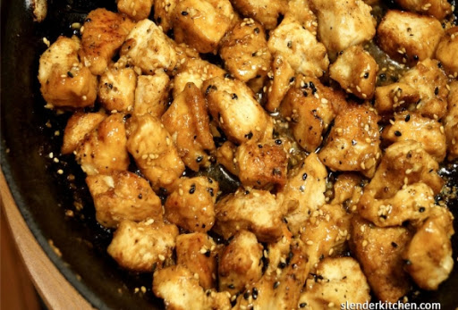 Place the entire pan in the oven and cook for 20 minutes. Then toss the chicken with sesame seeds and serve.