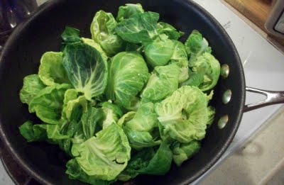 * *Alternately* do what I did. I hadn't cooked the bacon and by the time dinner came around, I didn't feel like sauteing the sprouts so I threw them in a pan, drizzled them with olive oil and sprinkled with salt and pepper and roasted at 400 for 20 minutes. They were crispy and yummy! Even Dan liked them. I was cooking something else for 20 minutes and pretty much ignored this - wouldn't hurt to stir them once or twice and take them out a bit before 20 minutes - some of them were pretty black.
