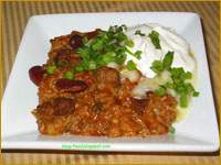 Brown meat. Drain. Add onion and cook until tender. Stir in remaining ingredients. Cover and simmer, stirring occasionally 30 – 35 minutes.