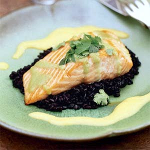 Seared Wasabi-Glazed Salmon with Forbidden Rice