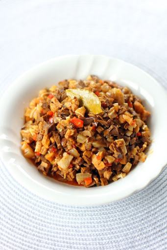 5. Add capsicums, 1 cup of vinegar and stock, bring to a boil and simmer in high heat until sauce thickens. Add more vinegar if you want it more sour.