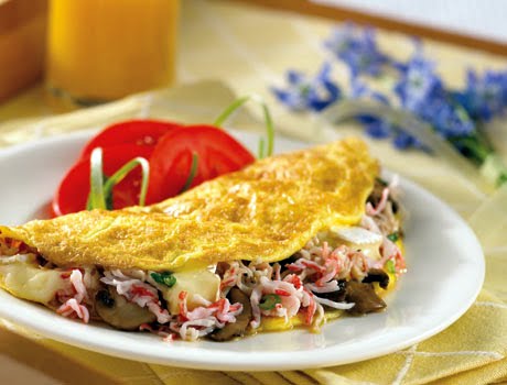 A sumptuous breakfast omelet made with Pre-Shredded Crab Delectables™, mushrooms & brie … sure to put a smile not only on Dad's face, but Mom & the kids too!!