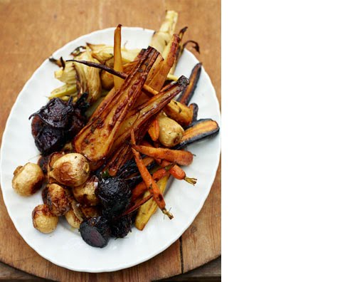 When you are ready to cook them, preheat your oven to 190ºC/375ºF/gas 5. Roast the vegetables in the hot oven for 50 minutes to 1 hour until they are golden, crispy and beautiful looking. Five minutes before they are ready to come out of the oven take the tray out, drizzle the honey over the parsnips and jiggle the tray so they are nicely coated. Pile all the veg up on a platter so they sprawl and hang all over the place. That platter is like winter in a nutshell, and every single mouthful will taste different and exciting – you’ll definitely want to keep it close to you at the table.