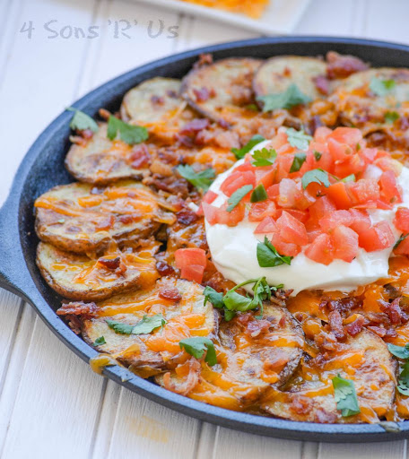 These potato based nachos feature some of your favorite toppings, making them perfect for sharing at any get together or game day.