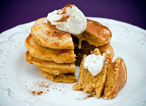 Brown Butter Pumpkin Pancakes with Bourbon Cream