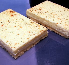 Spread filling over hot, partially baked crust - sprinkle the top with nutmeg. Place back in the oven and continue to bake until the center is almost set, about 20 to 30 minutes. Remove and cool completely - place in the refrigerator to chill for a couple hours before cutting into bars.