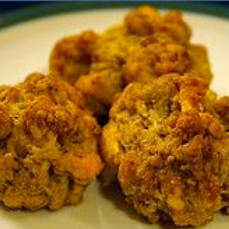 Form into 1 inch balls by rolling between hands, place on ungreased cookie sheet, Bake at 375 for 10-18 minutes.