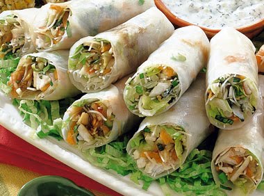 1 full roll with 2 tsp. (10 mL) sauce: 82 Calories; 2.5 g Total Fat (0.4 g Sat., 3.5 mg Cholesterol); 237 mg Sodium; 3 g Protein; 11 g Carbohydrate; trace Dietary Fiber