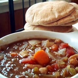 Puree half the soup in a food processor or blender. Return the pureed soup to the pot, stir and enjoy!