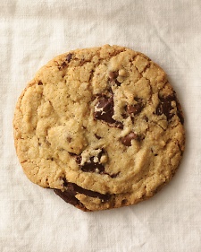 4. Scoop six 3 1/2-ounce mounds of dough (the size of generous golf balls) onto baking sheet, making sure to turn horizontally any chocolate pieces that are poking up; it will make for a more attractive cookie. Sprinkle lightly with sea salt and bake until golden brown but still soft, 18 to 20 minutes. Transfer sheet to a wire rack for 10 minutes, then slip cookies onto another rack to cool a bit more. Repeat with remaining dough, or reserve dough, refrigerated, for baking remaining batches the next day. Eat warm, with a big napkin.