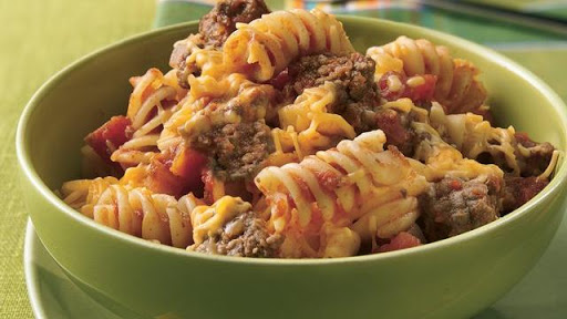 3 Stir in tomatoes, tomato sauce, sugar and pasta. Pour into ungreased 8-inch square (2-quart) glass baking dish.