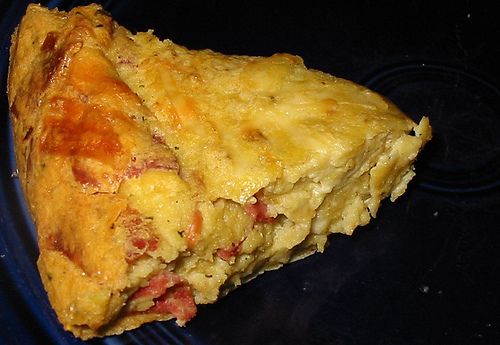 Make individual quiches to handle different tastebuds! Oil a muffin tin and/or mini-loaf pans, and divide the batter evenly between them. Add a handful of desired fillings to each, and bake for 20-30 minutes. (In the picture at right, I made 50% more than this recipe, so 6 eggs, 1 1/2 cups baking mix, etc. Doubling would also work wonderfully for making individual quiches)