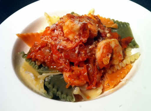 Heat 1 tablespoon oil in a large nonstick skillet over medium-high heat. Sprinkle shrimp with salt; add shrimp to pan. Cook 2 minutes on each side or until shrimp are done. Transfer shrimp to a bowl. Heat remaining 1 tablespoon oil in pan. Add onion, minced garlic, basil, and crushed red pepper to pan; sauté 1 minute. Add tomato paste and tomatoes; bring to a boil. Cook 3 minutes or just until sauce begins to thicken. Return shrimp to pan; cook 1 minute or until thoroughly heated. Add parsley to the pan, stirring well to combine. Serve over pasta.