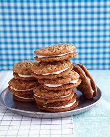 3. In a medium bowl, using mixer, beat cream cheese and confectioners' sugar until light, 2 minutes, scraping down bowl as needed. Spread filling on flat side of half the cookies. Sandwich with remaining cookies.