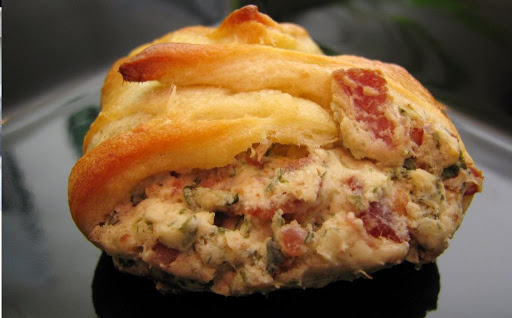 Cut each rectangle in half diagonally. Fold points over cream cheese mixture (I folded mine to look like envelope flaps, leaving the flat side open.)