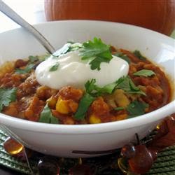 Stir in the turkey, and cook until evenly brown. Drain, and mix in tomatoes and pumpkin.