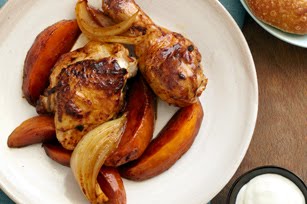 Pollo al limon y chile ancho con camotes