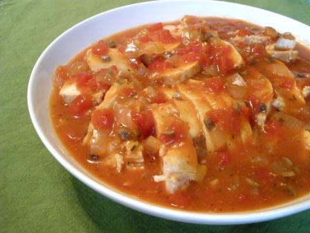 3.Combine the tomatoes (with juice), tomato paste, chicken broth, wine, salt, pepper, Italian seasoning, and bay leaf and pour over the chicken.