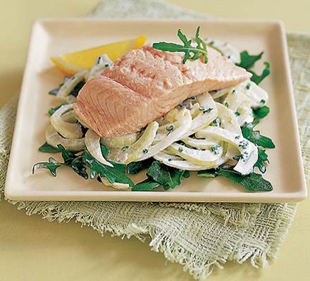 Place poached salmon atop creamy fennel for a fantastic, and quick to whip up, midweek meal