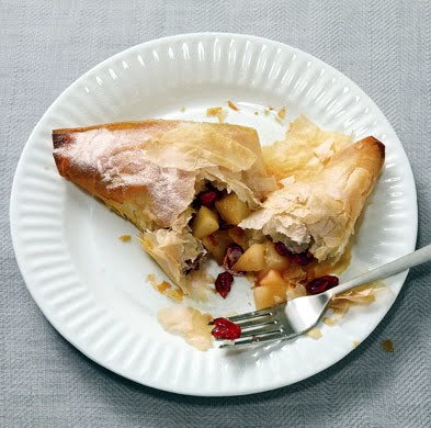 Transfer turnover, seam side down, to 1 baking sheet. Brush top with butter. Repeat with remaining phyllo, butter, and pear mixture. Place 4 turnovers on each sheet.