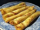 2. Butter griddle and heat to sizzling point. Pour batter in griddle and swish around until it covers the entire bottom of the pan. When lightly brown, turn over and brown. Remove and keep warm. After each palacinka, butter the griddle well.